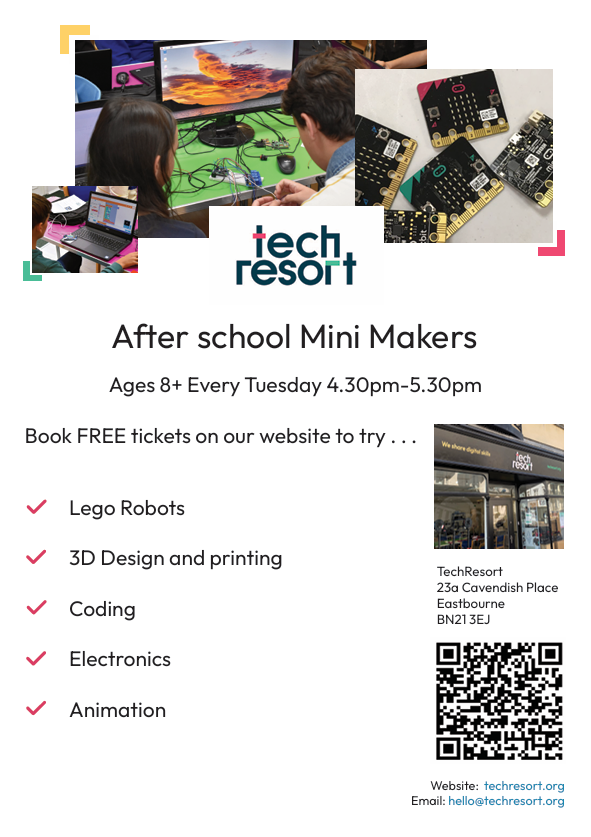 Our weekly Minis sessions for ages 8-12 will be moving to Tuesdays to help us manage our staffing a little better. Our new term starts on 13th January.
